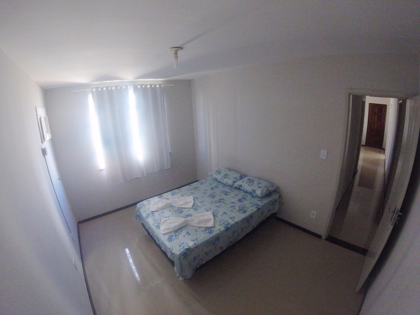 DESCRIÇÃO DOS QUARTOS 1 suÃte com Ar condicionado de janela, 1 Quarto com duas camas de solteiro, e 1 Quarto com cama de casal, com ventilador,